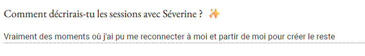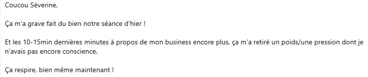 Et si tu as une autre question, tu peux m’écrire directement à contact@severinejanssen.be