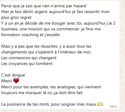 → Pendant ces 4 mois, tu accèdes au groupe privé et à son énergie collective d'expansion pour échanger, se soutenir, avancer ensemble.